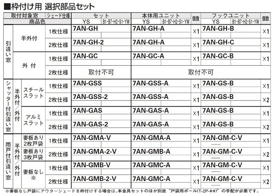 枠付用 取付ブラケットセット 雨戸付引違い窓 妻板なし用 2枚仕様用 7AN-GMB-2-V アウターシェード/2020用 オプション YKK AP