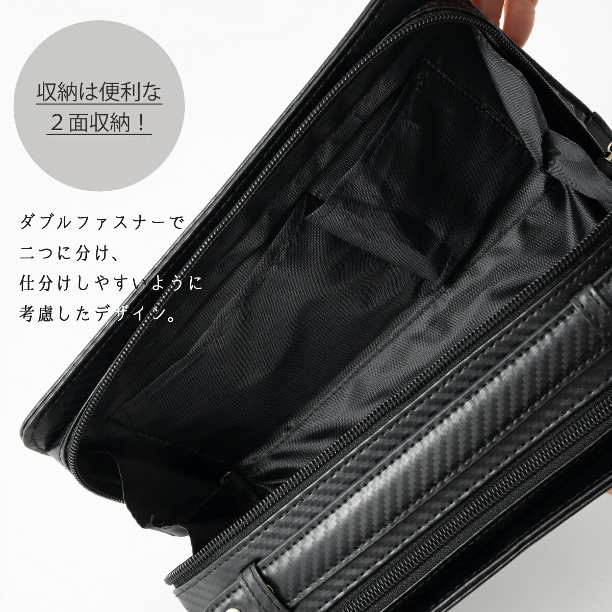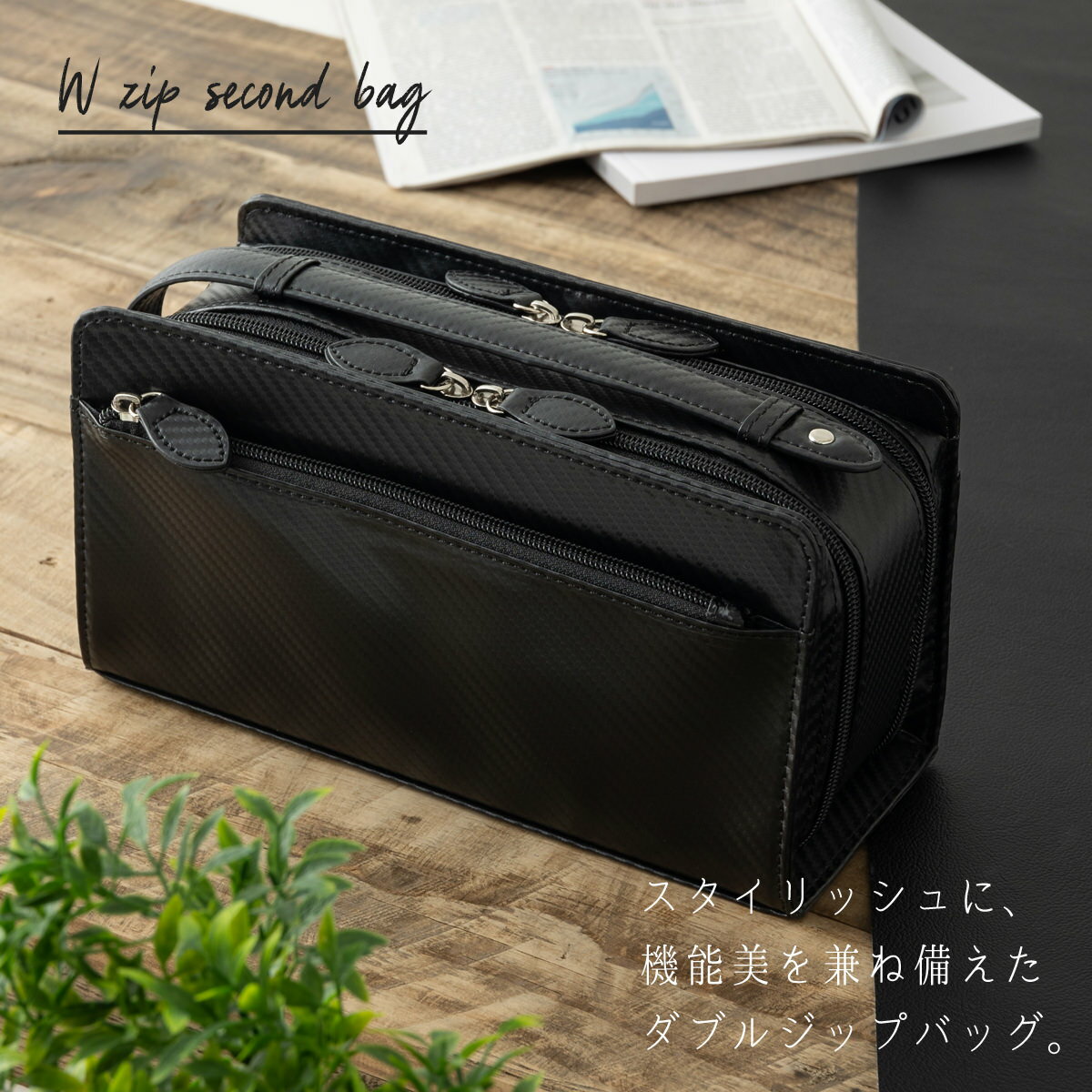 セカンドバッグ ダブルファスナー カーボン調 合皮 新作 ブラック セカンドバッグ ハンドバッグ ユニセックス ビジネス マトゥーリ ジャパン Maturi Japan メンズ ギフト プレゼント
