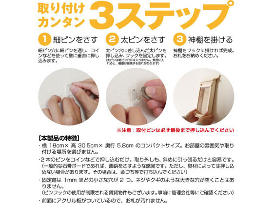 【ブラックフライデー限定★27日9:59迄店内ポイント2倍】【お取り寄せ】静岡木工 神棚 掛ける神棚 取り付けピン付き 日用雑貨