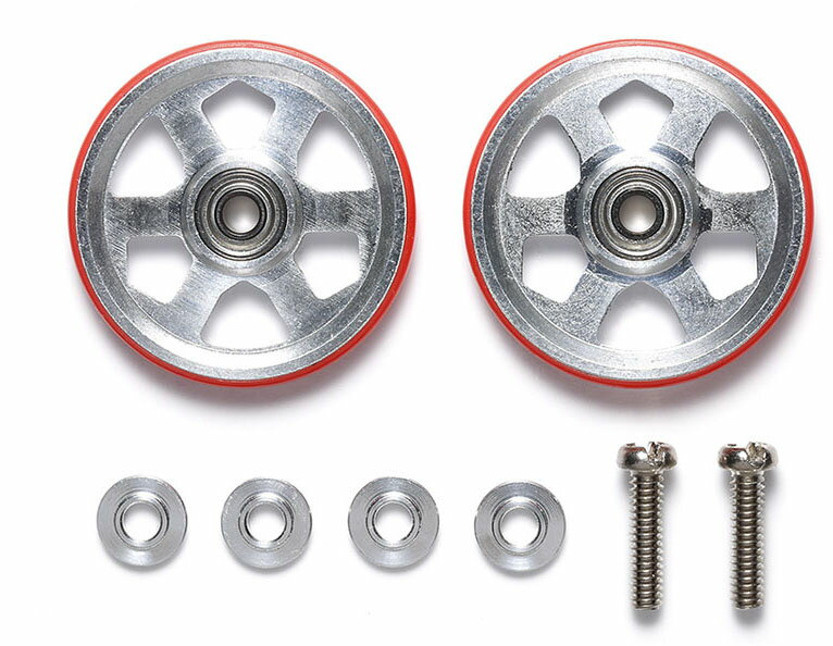 ミニ四駆 19mmプラリング付アルミベアリングローラー (6本スポーク) (レッド)【タミヤ ミニ四駆特別企画 ITEM95513】
