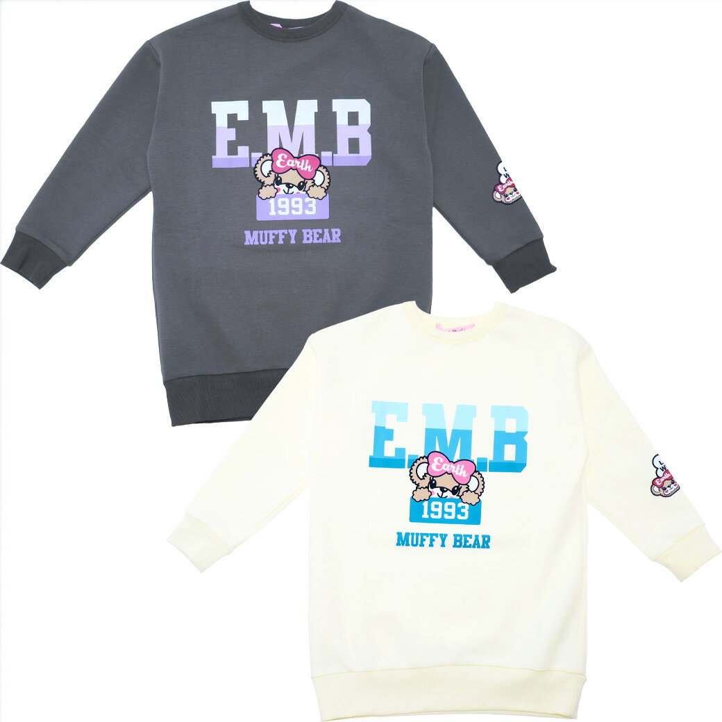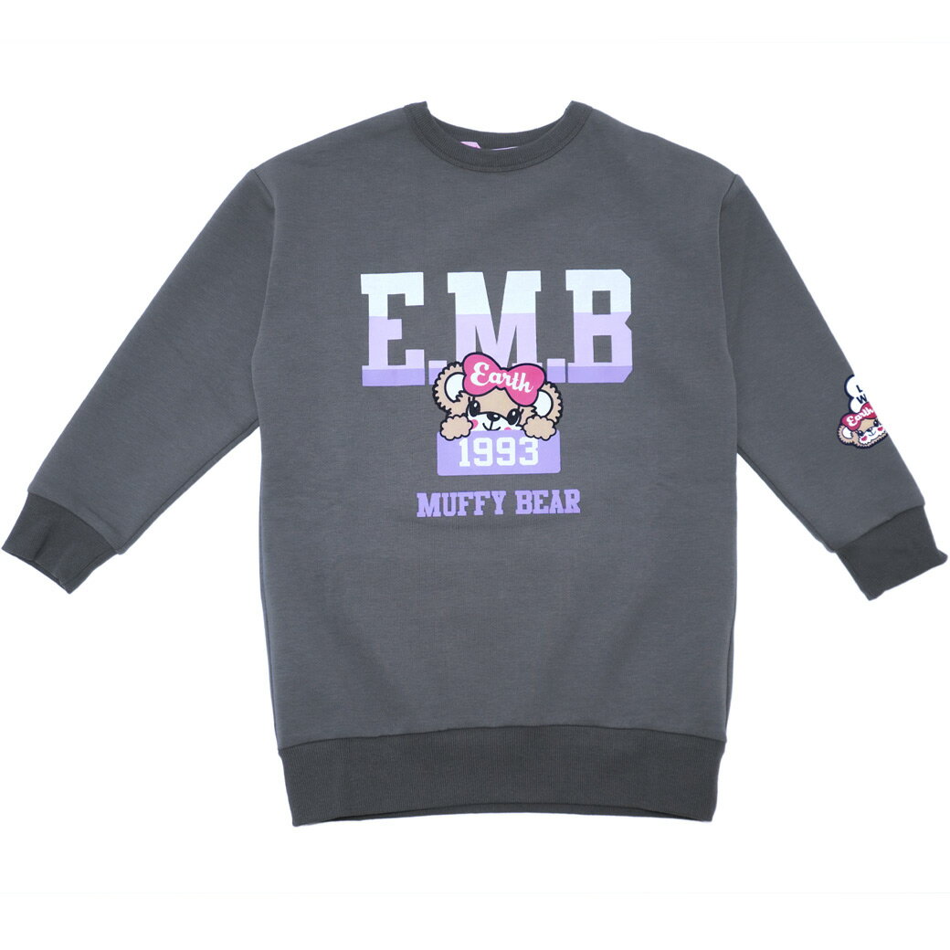 【EARTHMAGIC正規取扱店】アースマジック 2024冬 マフィープリントダンボールニットBIGトレーナー チャコールグレー クリームイエロー 女児 女の子 子供服 キッズ トップス 100cm 110cm 120cm 130cm 140cm