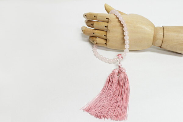 【☆ポイント最大47倍☆ブラックフライデー】 数珠 女性用 ローズクォーツ8mm 親珠水晶桜彫 正絹松風頭房 紙箱入 送料無料 b123