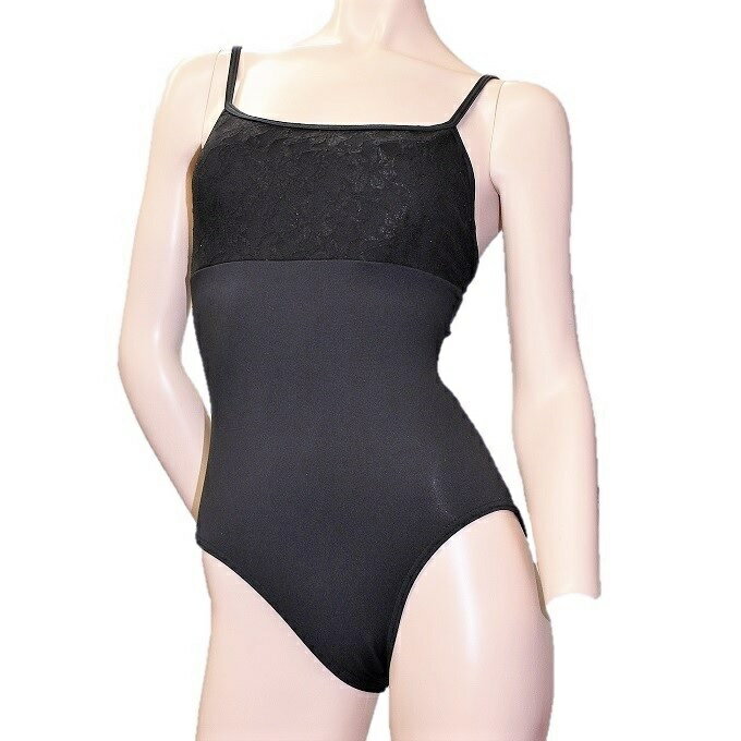 送料無料【RIESEL ブラック】ホールバック レースキャミソール レオタード ダンスケイト バレエレオタード 黒レースレオタード キャミソール