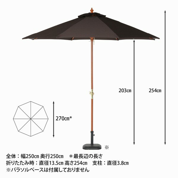 ガーデンパラソル 木製パラソル 270cm ブラウン 270BR 60164 (ベースは付属しません) ※北海道+3000円 【代引不可】