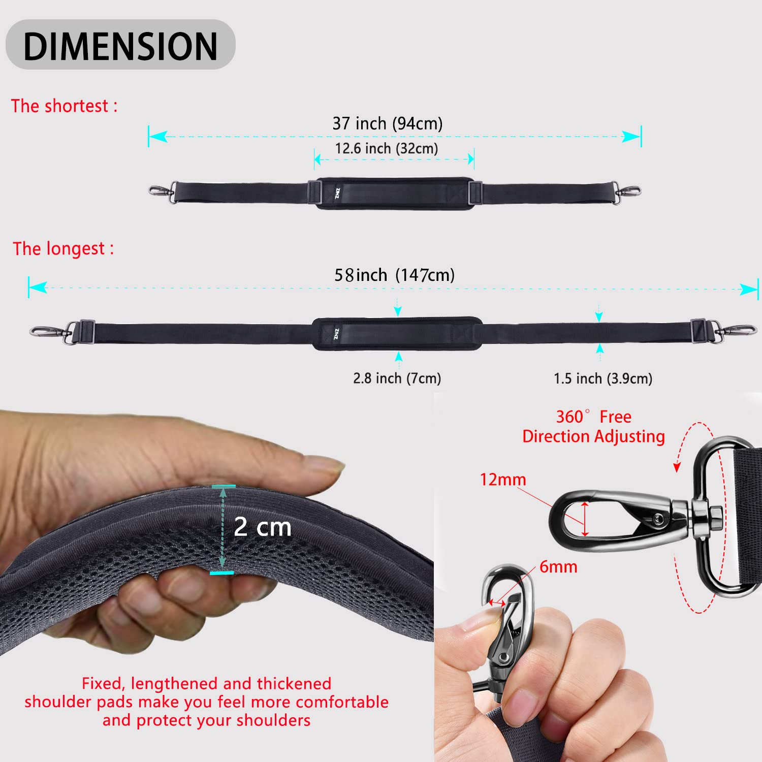 【送料無料】[ZINZ] 147CM ナイロン ショルダーベルト ショルダーストラップ 超耐久性 肩掛けひも - ショルダーバッグ・PC バッグ・カメラケース・ビジネスバッグ・スポーツバッグ・ツールキット・ギターバッグ など,黒
