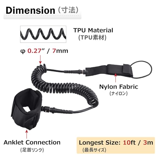【送料無料】Azarxis リーシュコード サーフボード サーフィン SUP リーシュ パドルリーシュ 安全ロッドリーシュ 足首に結び付け 浮き板 ボディボー カヤック カヌー