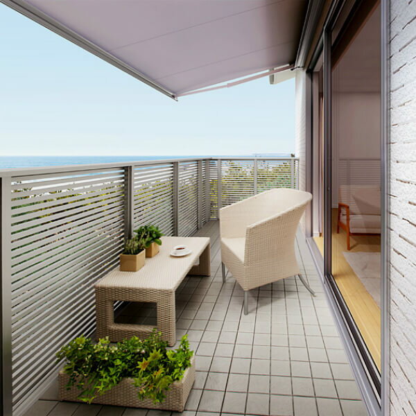 オーニング リクシル 彩風C型 電動式 アクアシャイン 1.5間 間口2730mm 出幅1.5/2.0m 庇 日除け 窓 後付け 雨よけ おしゃれ リフォーム DIY 建材屋