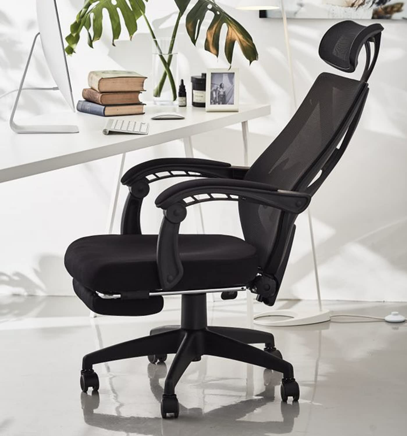 フィスチェア 椅子 (ブラック) (スポンジクッション内蔵) ハイバック リクライニング ヘッドレスト パソコンチェア PCチェア 組み立て簡単 ゲーミングチェア