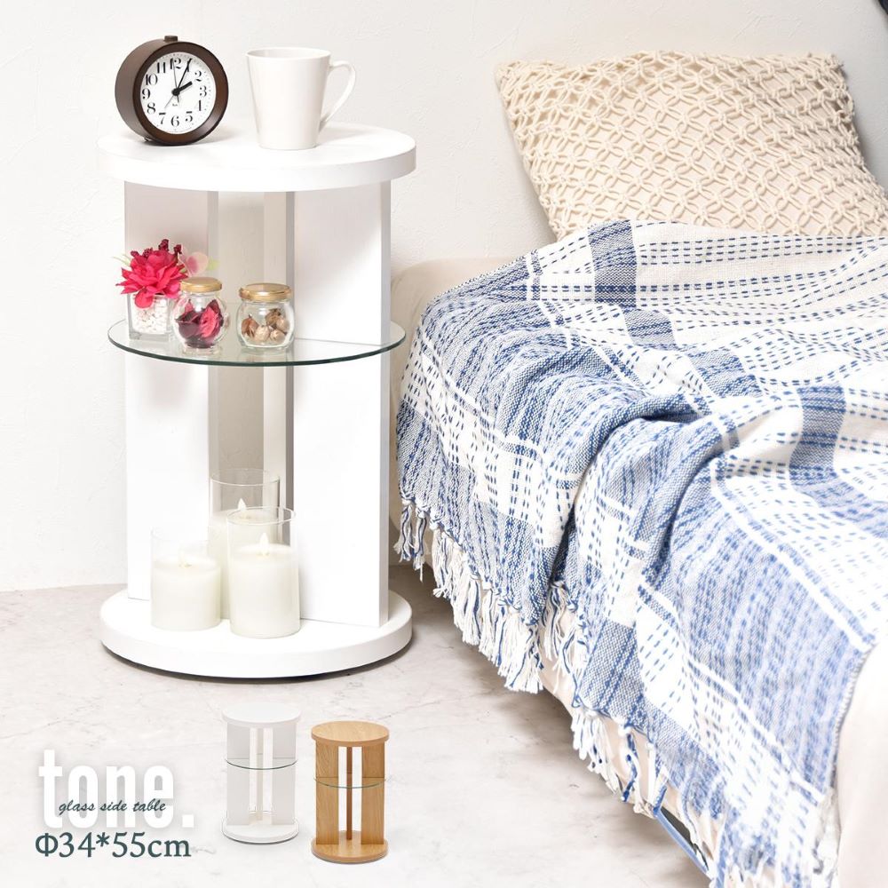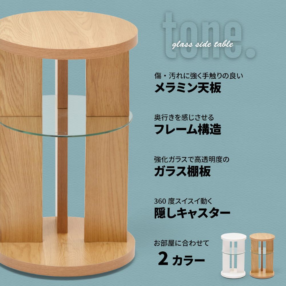 【 エントリーでポイント最大7倍 11/20(木)20:00〜11/27(木)1:59まで 】 円形 サイドテーブル tone.キャスター付 組立式 ONST0208 BBファニシング | ベッドサイドテーブル 円 丸 お手入れ簡単 ナイトテーブル ガラステーブル ガラス製 ガラス棚 木製テーブル