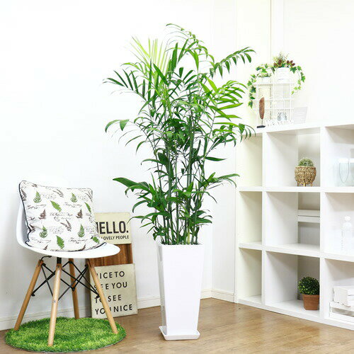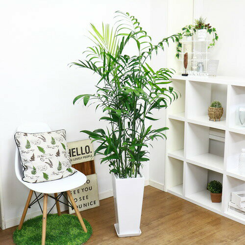 人気のセフリジヤシ 高級陶器鉢スクエアロングホワイト 管理説明書 受皿付き 肥料小袋プレゼント【数量限定販売】【カマエドレア チャマエドレア カイエンナッツ 育て易い 人気 ヤシの木 竹のような姿 オレンジ色の実 南国 アジアン お祝い】 観葉植物