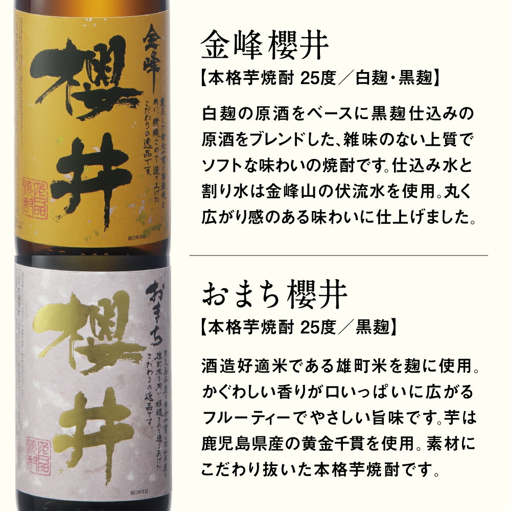 【ふるさと納税】櫻井酒造 本格芋焼酎 一升瓶 飲み比べセット(1.8L×2本)【金峰櫻井・おまち櫻井】 飲み比べ 家飲み 宅飲み 芋焼酎 お酒 ギフト ご贈答 お湯割り 水割り ロック ハイボール 25度 プレミア 限定 米麹 匠の技 こだわり 南さつま市 人気 送料無料