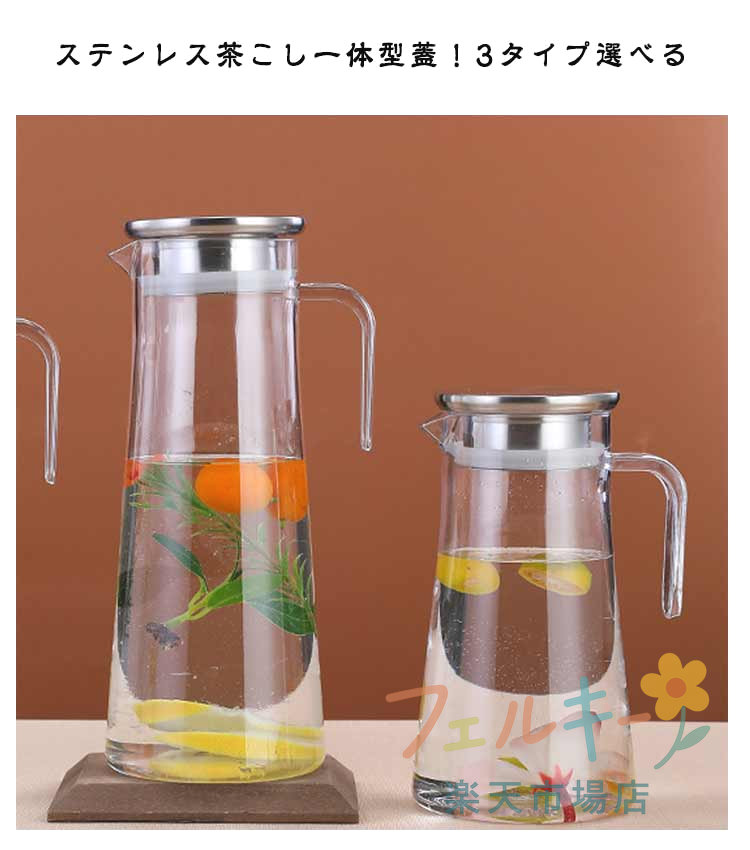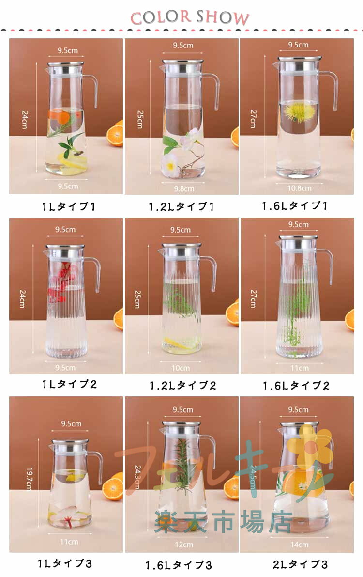 \全商品ポイント5倍+クーポン配布中/ 麦茶ポット 2L 冷蔵庫 1.6L 麦茶ポット 3タイプ選べる 水差し 冷水ポット 耐熱ガラス スクエアサーバー 大容量