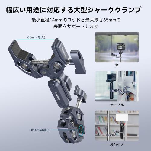 SmallRig スーパークランプ ボールヘッド マジックアーム 蟹バサミクランプ ダブルクランプ 緩み防止 360度回転 1/4ネジ 偏向防止 雲台/撮影 LEDライト用 モニター外付け用 バイク ベストアングル 三脚 ウェブカメラに対応 -4103B