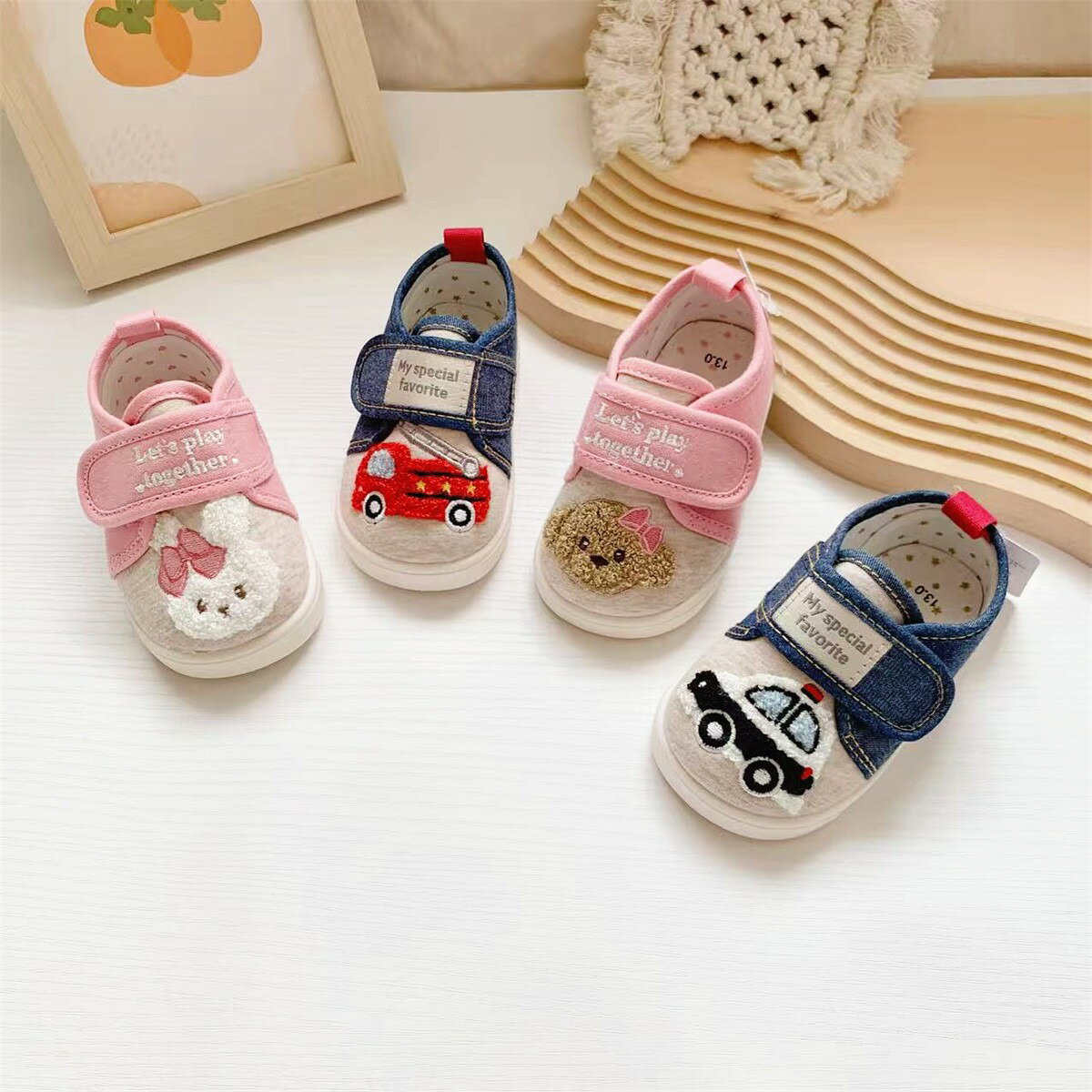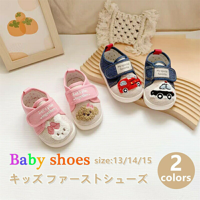 ベビーシューズ ファーストシューズ キッズ スニーカー 靴 うさぎ 消防車 クマ つま先保護 ファースト シューズ 女の子 男の子 ピンク ブルー 子供 可愛い 軽量 お出かけ 疲れない 痛くない 滑り止め 履きやすい おしゃれ マジックテープ 出産祝い 誕生日 ギフト 13-15cm