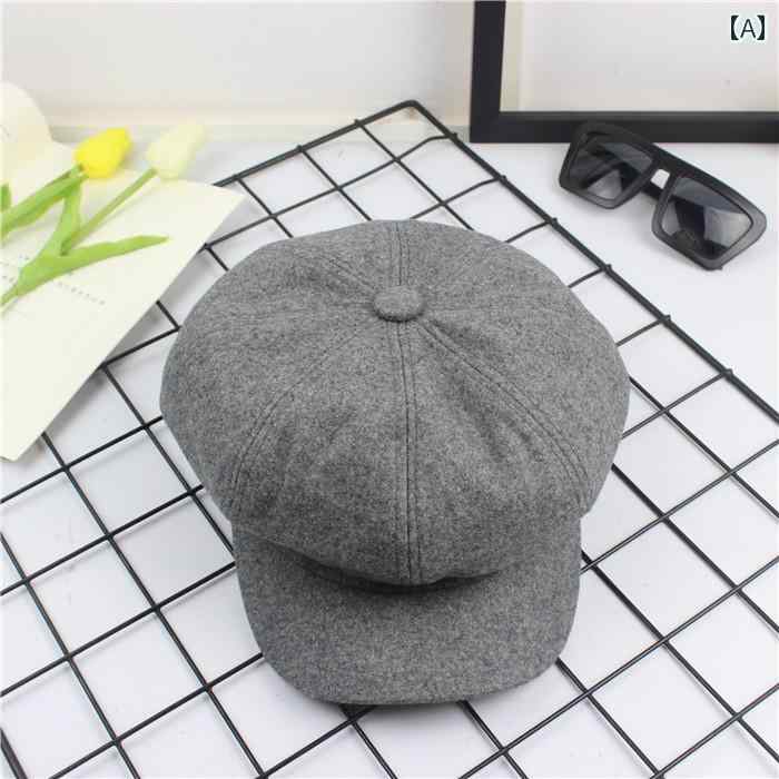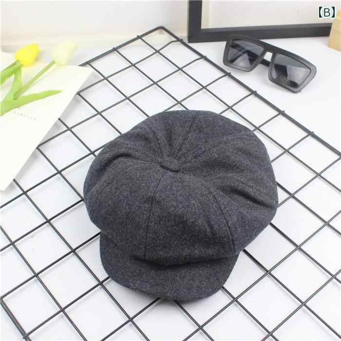 キャスケット メンズ 秋冬 レトロ ブリティッシュ ウール メルトン 男女兼用 カジュアル 無地 チェック柄 つば クラシック ハット