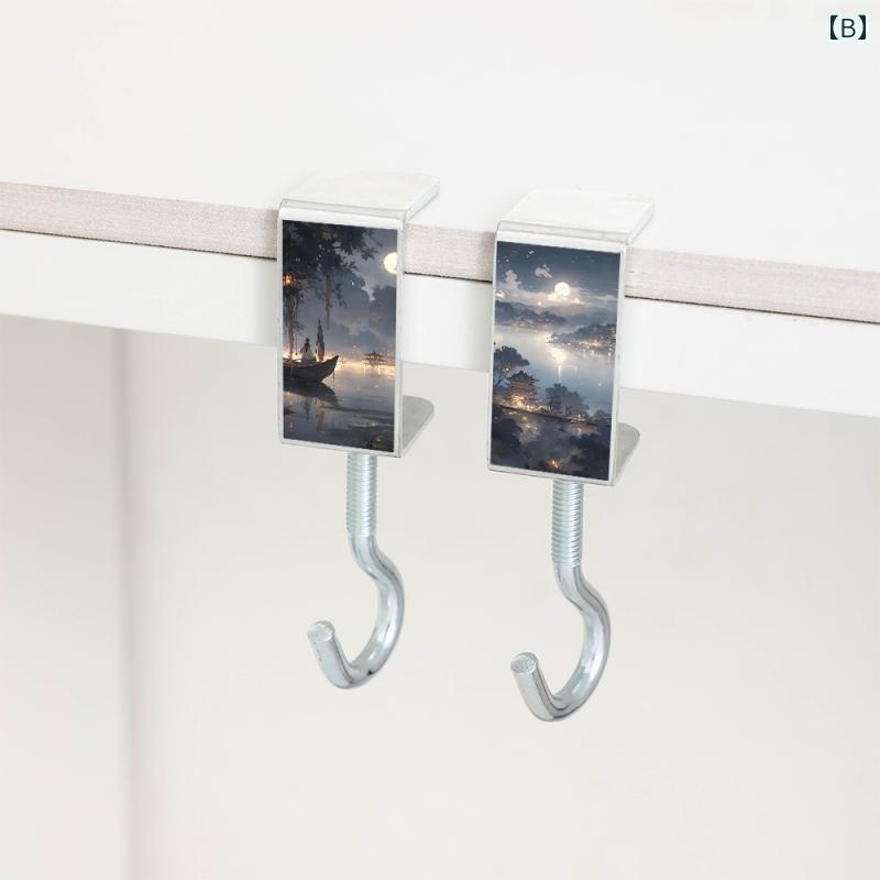 カバン掛け フック 江南 風景 夜 バッグ デスク サイド パンチ フリー 取り外し 簡単 回転 調節 滑り止め 亜鉛合金 おしゃれ 水筒 シルバー チャイナ風 セット