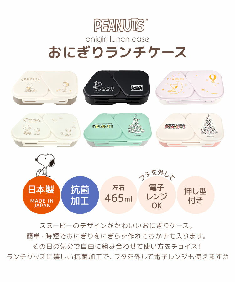 スヌーピー お弁当箱 おにぎり ケース SNOOPY おにぎりランチケース OSK オーエスケー 2個用 キャラクター かわいい おしゃれ おにぎり型 ランチボックス 三角 おむすび 弁当箱 おかず おむすびケース レンジ対応 日本製 抗菌 押し型 おにぎりメーカー 簡単 時短 大人 子供