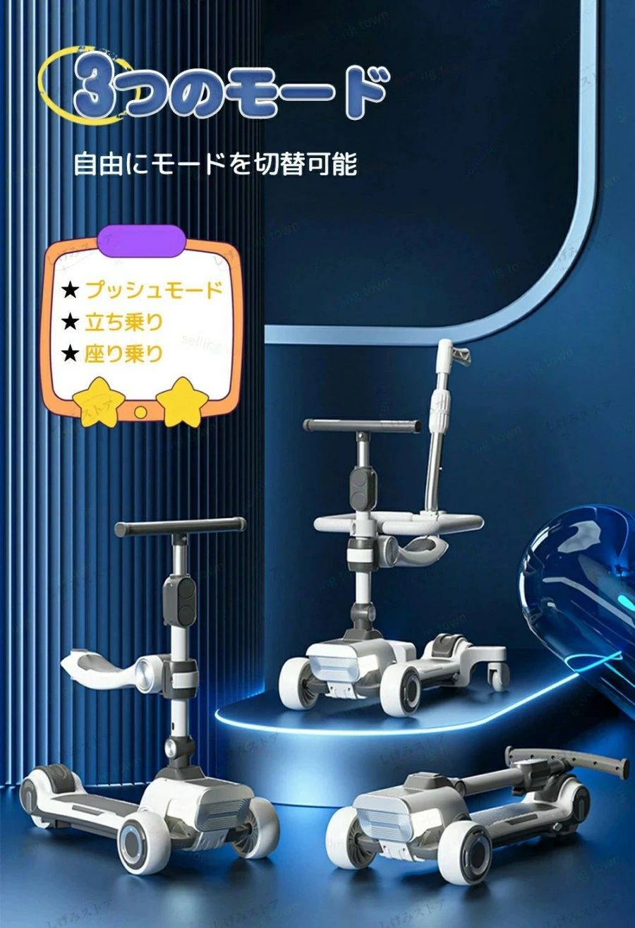 キックボード 充電式 電動 人力 3輪 子供 キッ3段階高さ調整 3輪タイプ 光るLEDタイヤ 軽量で頑丈 持ち運び便利 耐荷重100KG おもちゃズ