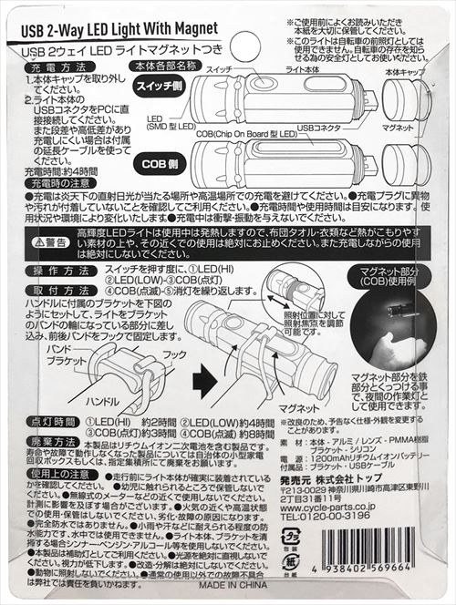 TOP 【4938402569664】 トップ LEDライト USB2ウェイライトマグネット付