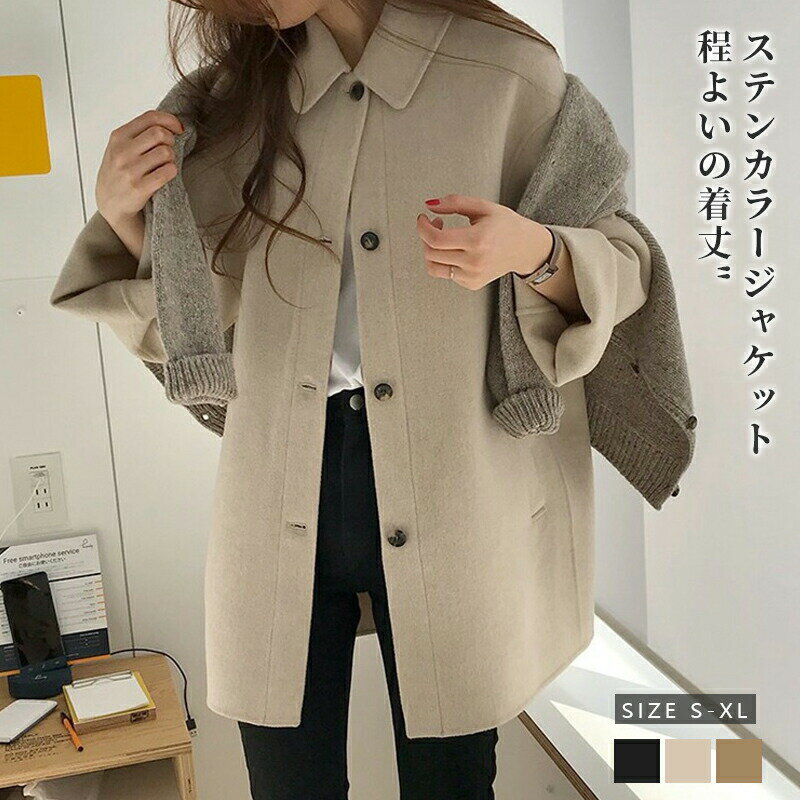 ラシャコート ウール コート 秋冬 ハーフコート レディース ジャケット ステンカラーコート カジュアル アウター 冬 スタンドカラージャケット ウールコート おすすめ ミドル丈 ウール混 きれいめ 無地 大きいサイズ ブラック