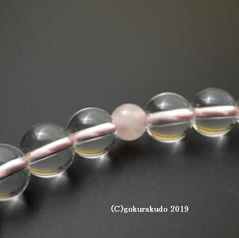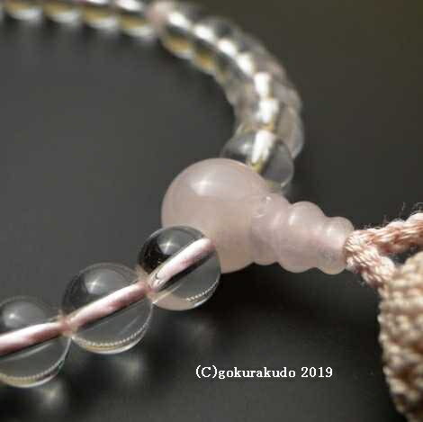 数珠 女性用 主玉水晶7mm (親・2天・ぼさ)ローズクオーツ 正絹頭付房(抑えたピンク色)