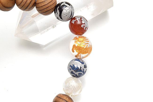 『麒麟・四神』刻印ブレスレット屋久杉仕立て 10ミリ玉【当店限定品】念珠 屋久杉ブレスレット 腕輪 厄除けブレスレット お守りブレスレット 数珠ブレスレット きりん 玄武 朱雀 青龍 白虎 ししん 厄除け祈願