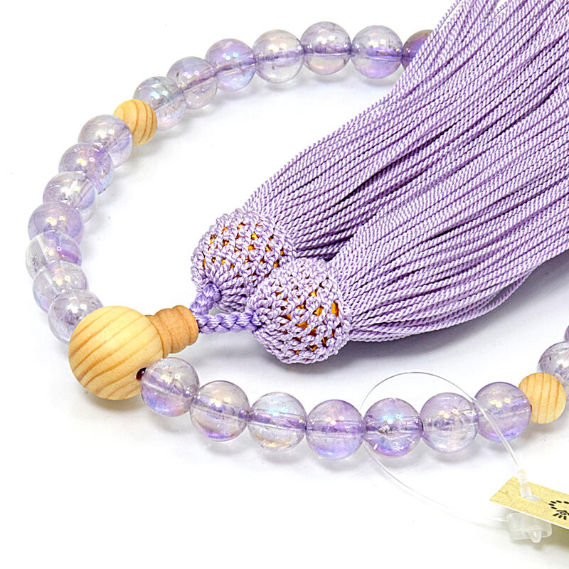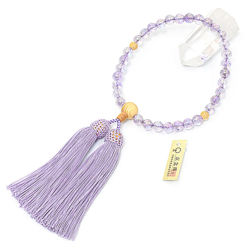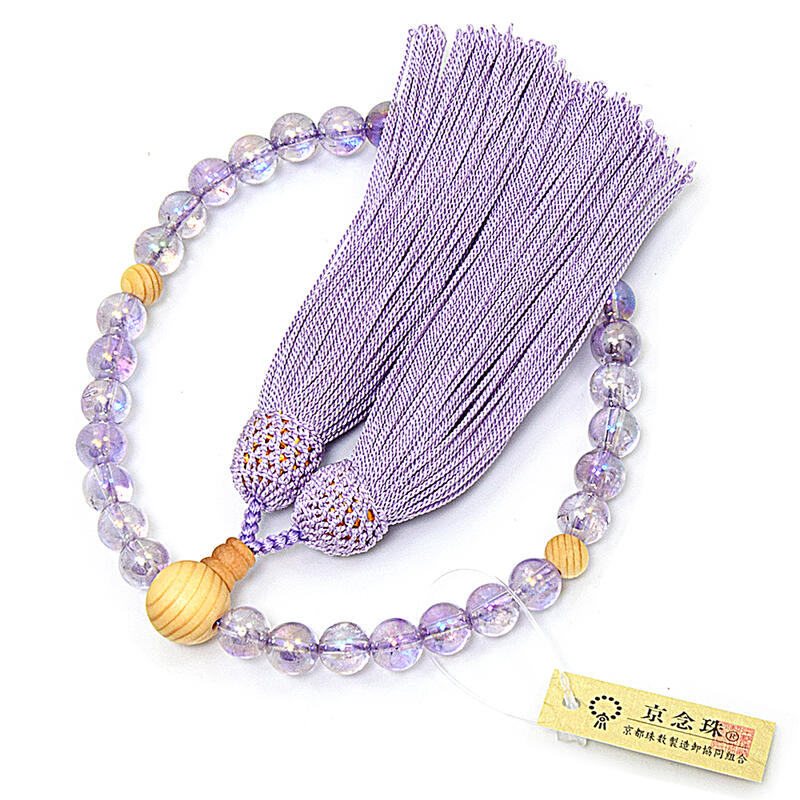 【数珠】『アメジストオーラクォーツ-高野槙仕立て』◆水晶コスモオーラ仕様8ミリ玉女性用数珠【京念珠】(正絹房仕様)女性用略式数珠 八宗用数珠 片手数珠 女性用数珠 京都 水晶数珠 先祖供養