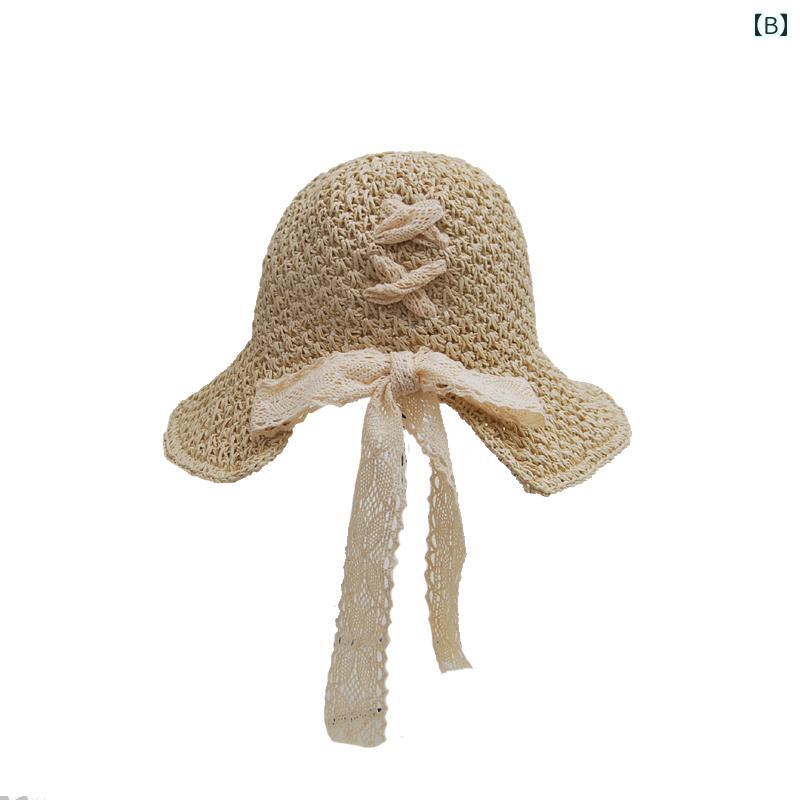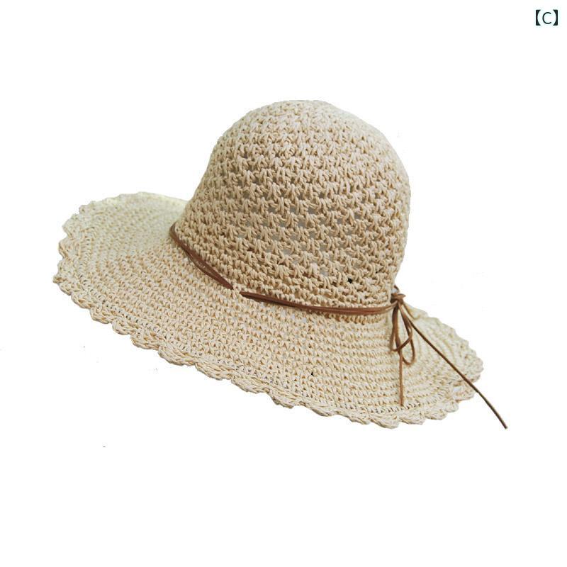 麦わら帽子 レディース ハット 日よけ レース リボン 春夏 旅行 日焼け防止 ビーチ つば広 韓国 ベージュ