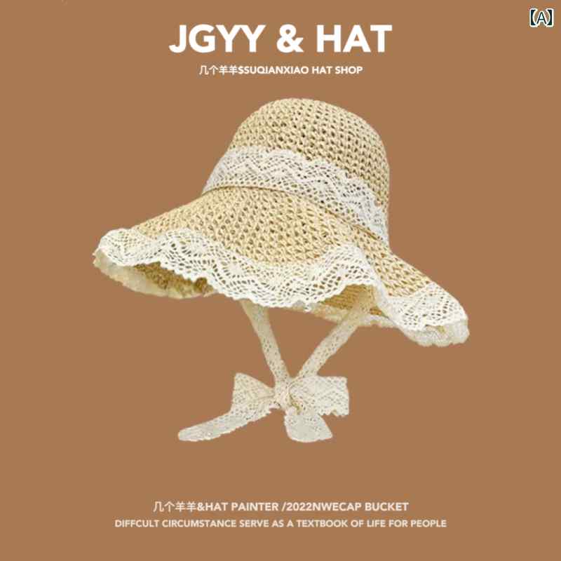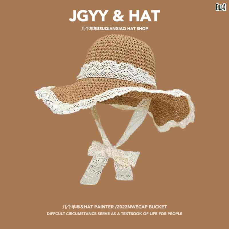 麦わら帽子 レディース ハット 日よけ 韓国 レース リボン 春夏 旅行 日焼け防止 ビーチ おしゃれ ベージュ ブルー