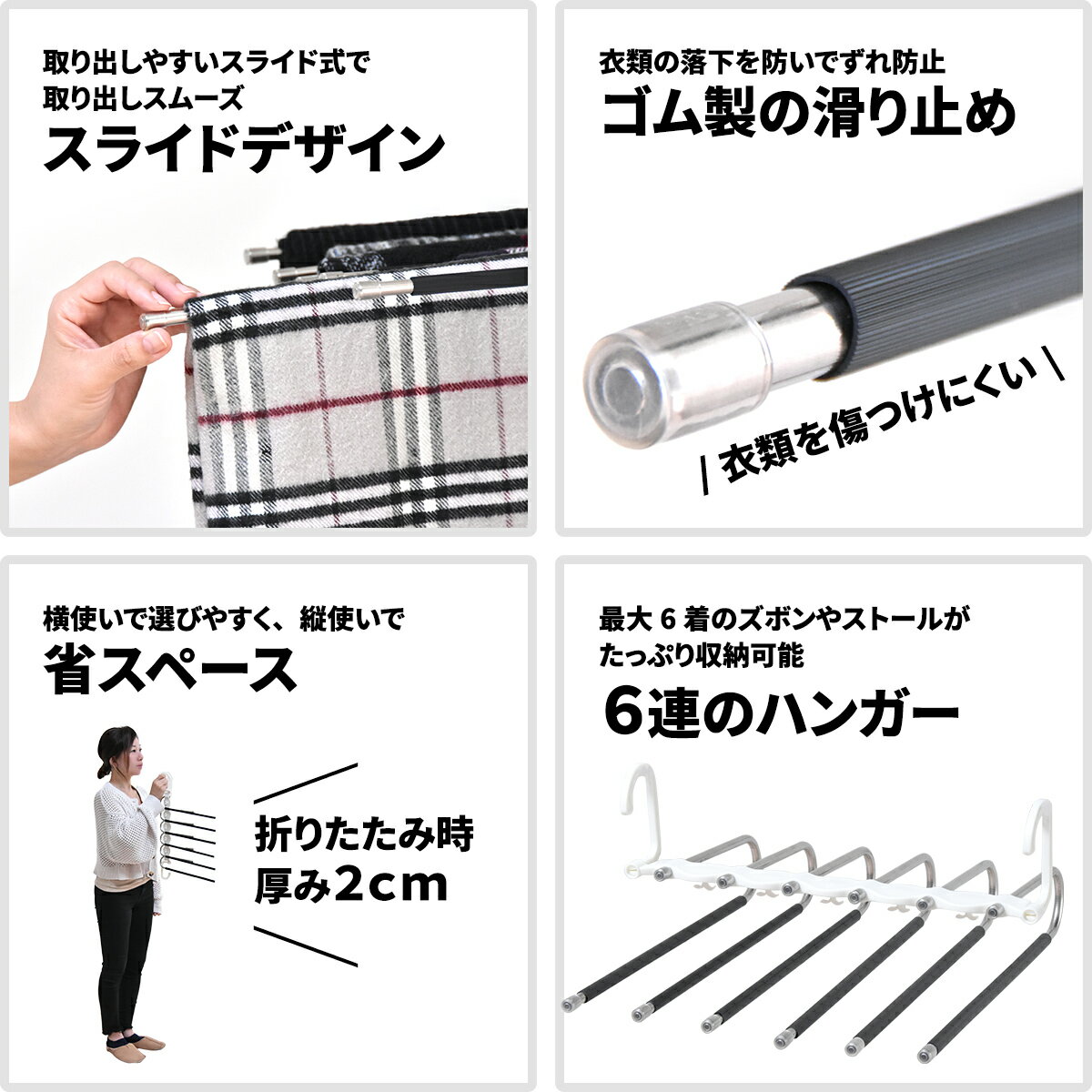 6連省スペースズボンハンガー 2個セット ONLS0202 リビング収納 シンプルスタイル カジュアル 角型 プラスチックランドリー ハンガー 6連ズボンハンガー 6連ストールハンガー 6連パンツハンガー