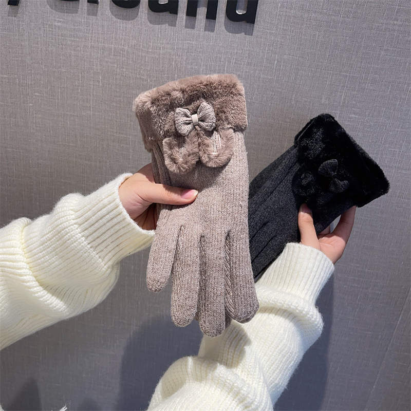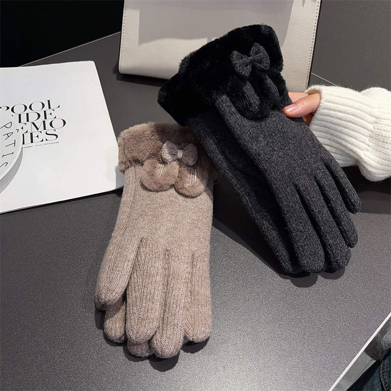 レディース手袋 兎耳 蝶結び バイカラー (T)