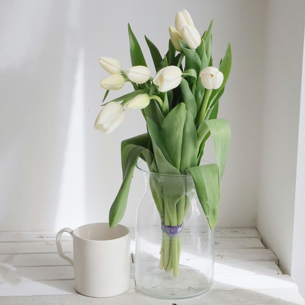 【生花】チューリップ(白一重) ダーウィスノーなど【早締切-74】[5本]