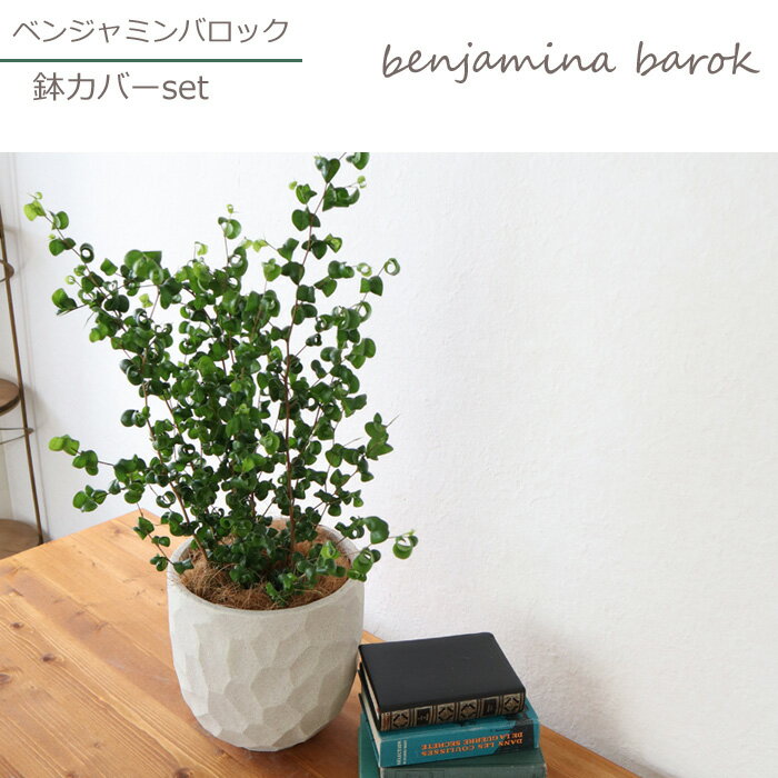 (観葉)『ベンジャミン バロック ジオメトリーラウンドW鉢 ヤシ繊維・受け皿付 』GF3285 植物と鉢カバーのセット 観葉植物 ギフト プレゼント グラスファイバー 誕生日 開店祝 移転祝 新築祝 引越祝 結婚祝 新生活 インテリア FKTK