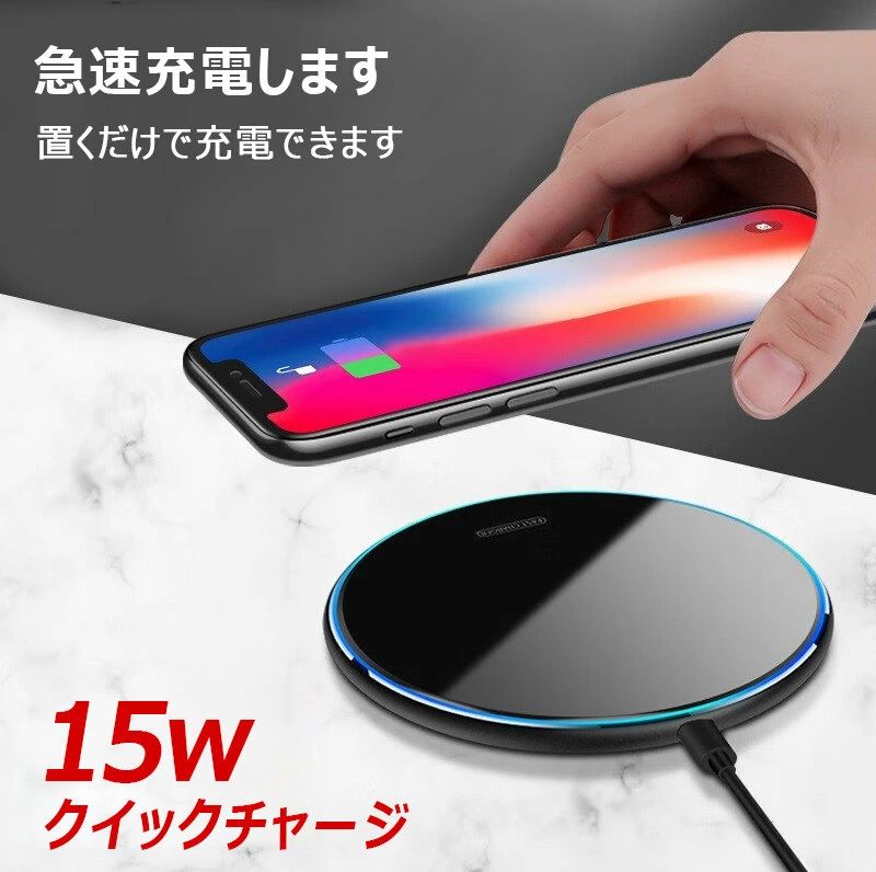 置くだけ充電 スマホ充電器 ワイヤレスチャージャー 車載 多重保護 軽量 超薄型 充電 無線 急速 発熱対策 充電器 ワイヤレス