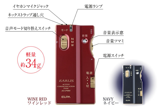 【ポイント5倍】イヤホンマイク式集音器 イヤリス ワインレッド AS-P001(WR) ELPA エルパ [集音器 補聴器]【ポイントUP:2025年11月14日10:00〜11月16日 23:59まで】