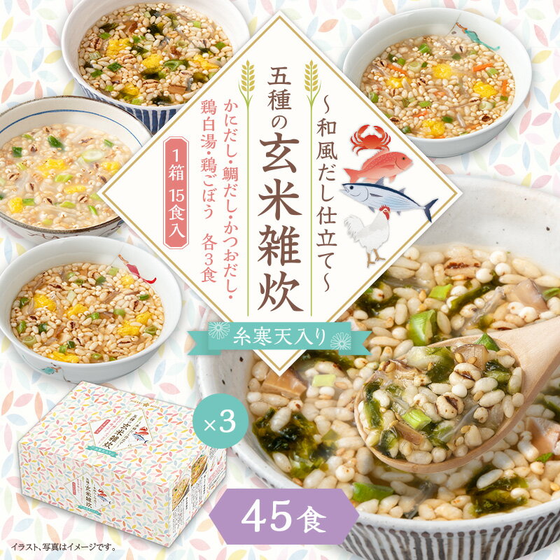 五種の玄米雑炊 15食 (×3箱) 45食セット 和風だし仕立て 糸寒天入り 5種の味 各種3食入り 詰め合わせ インスタントスープ リゾット 食べるスープ おかゆ 茶漬け 減塩 置き換え 寒天雑炊 仕送り ひかり味噌 即席 具だくさん