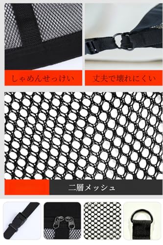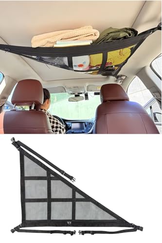 YFFSFDC 車内天井収納 ネット 三角形 80*55cm 2層タイプ ファスナー付き荷物落下防止 バックル固定 調整可能 荷物収納ネット カーゴネット ブラック