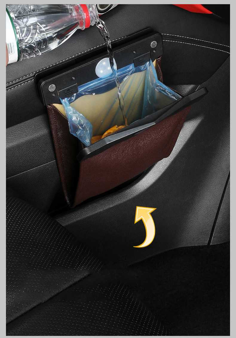 車用ゴミ箱 車載ごみ箱 車用収納ケース シートバックポケット 後部座席収納 車用小物入れ マグネット LEDライト PU製 折り畳み式 コンパクト 省スペース 防水 倒れない 大容量 ゴミ袋付