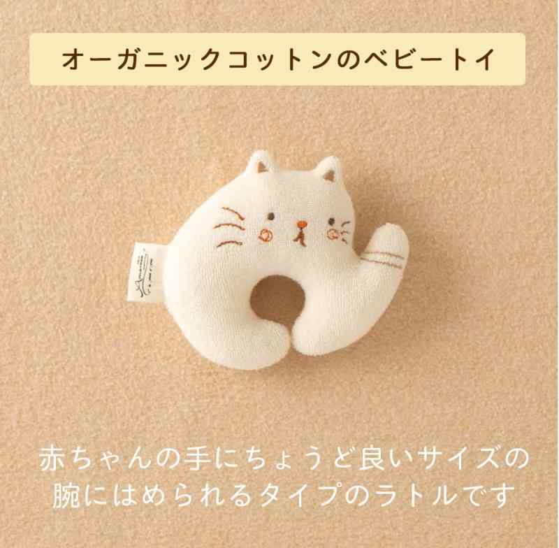 Amorosa mamma アモローサマンマ 【日本製】オーガニックコットン ネコ ミニラトル にぎにぎ がらがら 新生児 赤ちゃん用おもちゃ ファーストトイ