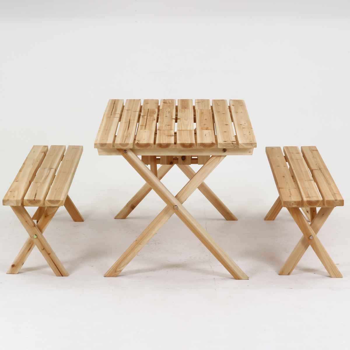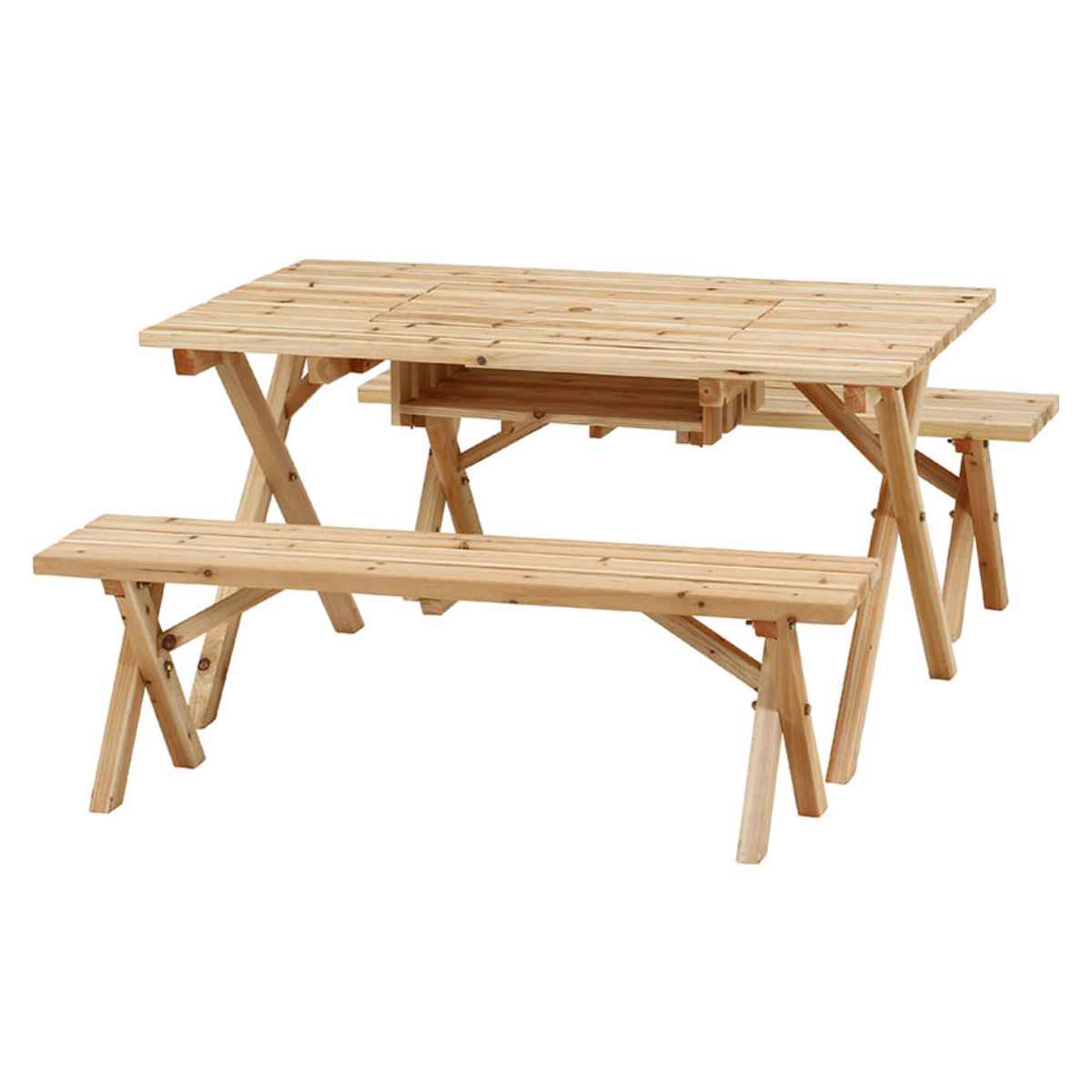 ガーデンテーブル BBQテーブル&ベンチセット コンロスペース付 木製 ( テーブル ガーデンチェア ガーデン 庭 木 机 ベンチ バーベキュー用 テーブルセット ウッドテーブル ウッドベンチ セット コンロラック 3点セット ) 【39ショップ】