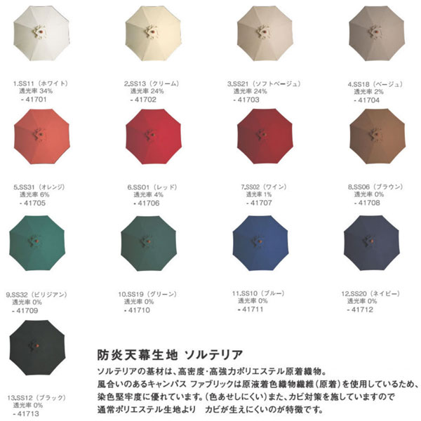 富士 パラソル SEGseries 天幕ソルテリア(ポリエステル) フレーム木目調 スタンダードタイプ SEG-2525-3692 受注生産