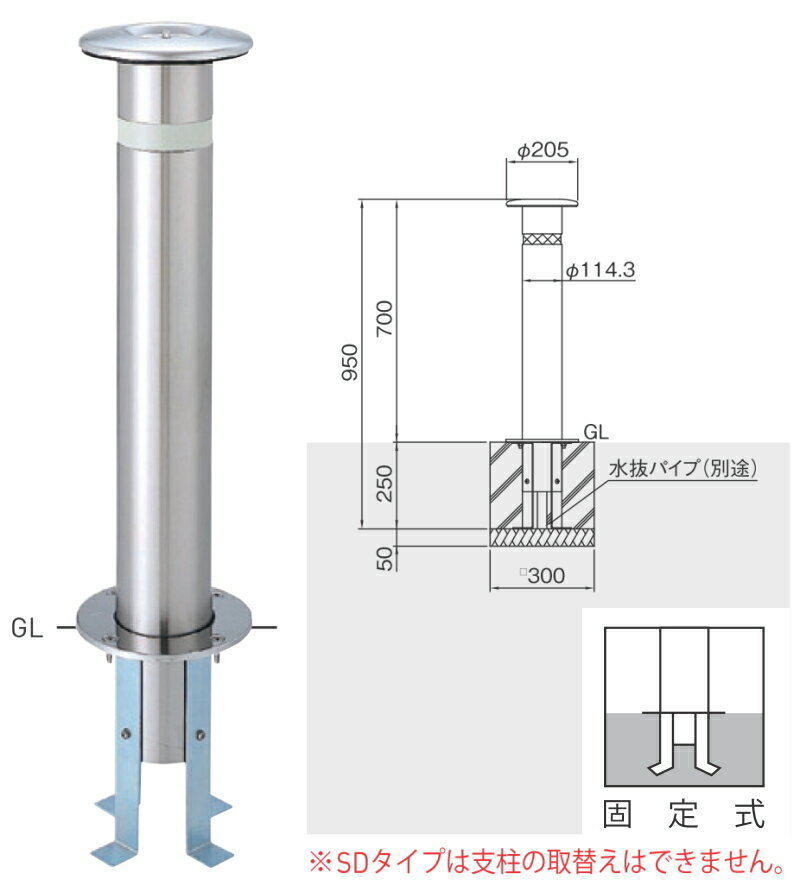 帝金 ステンレス製バリカー 上下式 スタンダード KS-10C-SD クサリ内蔵型 【代引不可】【個人宅不可】【北海道・沖縄・その他離島地域への配送不可】
