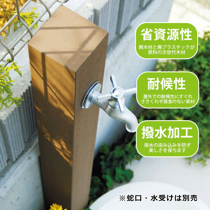 【リサイクルで作られた人工木材の立水栓】【一口タイプ】【蛇口別売】「レヴウッド」