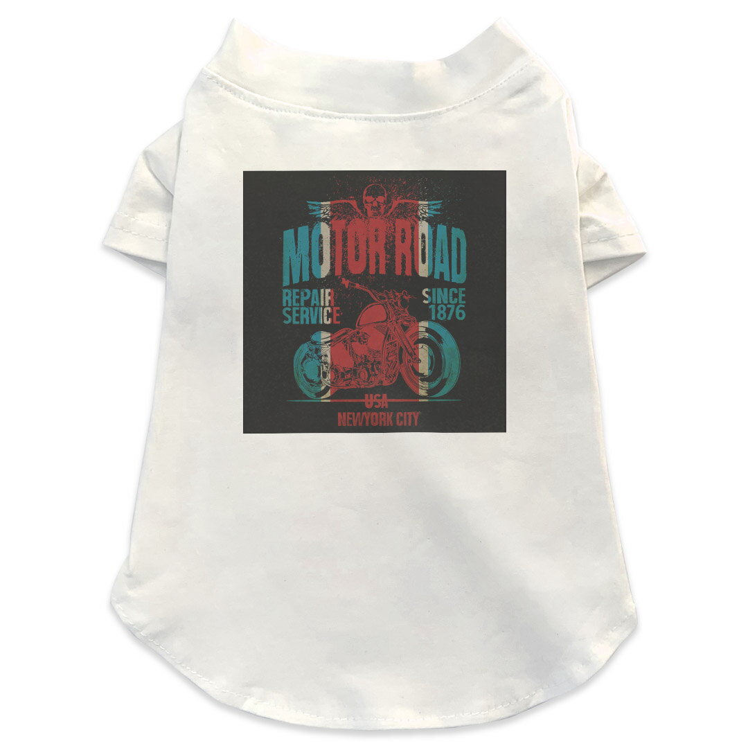 犬専用Tシャツ 選べる5size 小型犬 袖あり 半袖 ホワイト デザイン T shirt XS S M L XL ペットウェア ペット服 カジュアル おしゃれ コットン 綿 バイク 乗り物 ロゴ 014393