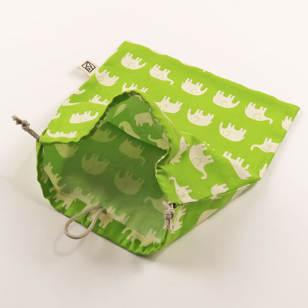 ループ付き巾着袋(給食袋)26cm×22cm(loop-3L)2cm刻みでサイズが選べるゾウ! Made in Japan