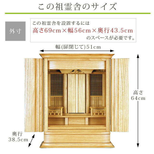 【今ならポイント2倍】祖霊舎 神徒壇 【国産 祖霊舎】神徒壇 祖霊舎 伊左(いっさ) 21号 上置き E 桐 ライト シンプル おしゃれ リビング インテリア 御霊舎 祭壇宮 神道 国産 本体のみ