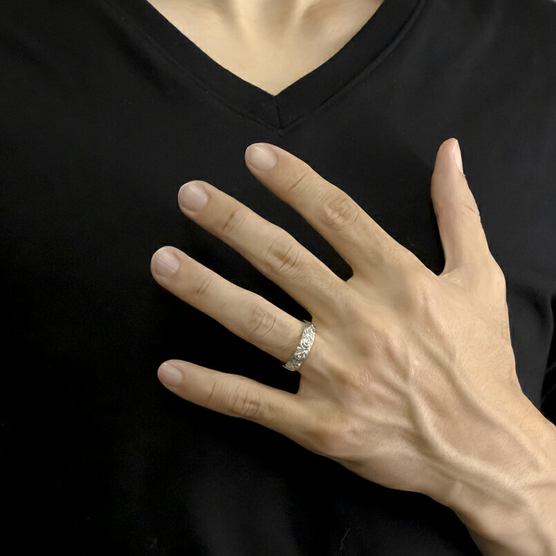 リング 10k メンズ ハワイアンジュエリー 幅広 指輪 太め ピンキーリング 婚約指輪 10金 シンプル 波 スクロール 人気 ホワイトゴールドk10 k10 ジュエリー 地金 男女兼用 ユニセックス 男女問わず
