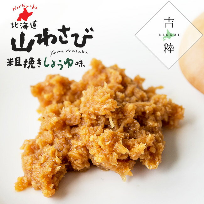 山わさび粗挽きしょうゆ味 110g×2本【蝦夷山葵醤油味】粗挽きにした北海道産山わさびを醤油で味付けしました【エゾワサビしょうゆ漬け】温かいご飯、お刺身、冷奴、和え物、肉料理等に【西洋山葵】ホースラディッシュ【山わさび醤油漬け】【メール便対応】