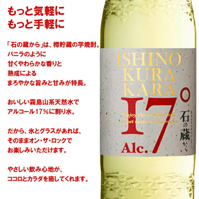 【セール期間限定3%OFFクーポン!20日20時~27日1時59分】 石の蔵から 霧島山系天然水仕立て 本格芋焼酎 本坊酒造 17度 720ml 瓶 【cp】 【 本格芋焼酎 オーク樽熟成 黄金千貫 】