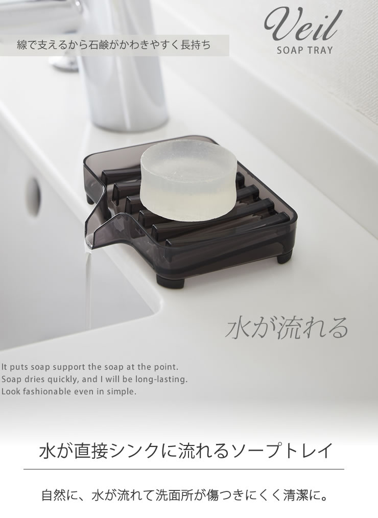 【ネコポス対応】水が流れるソープトレー ヴェール(veil)透明 簡単水はけ 石鹸台 [山崎実業]おしゃれ 北欧 セレブ【e暮らしR】【ポイント5倍】